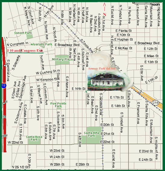 onto Broadway to Toole Ave (immediate right after the underpass). Take